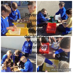We have talked about properties of materials and reversible and irreversible changes. We have carried out experiments on absorbency, decantation, filtering, sieving, solubility, oxidisation (rusting) and thermal insulators.